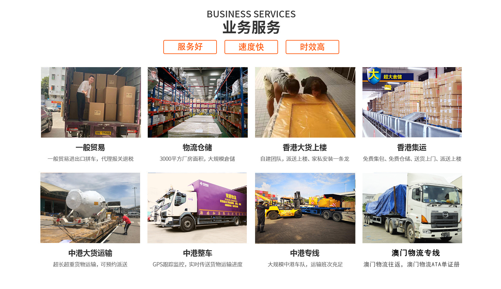2、速度快捷: 每天準時發車,車型齊全、包裝卸,一切從簡讓客戶省心省力發香港。